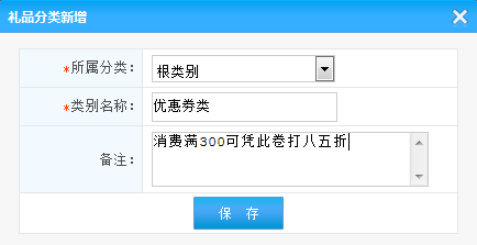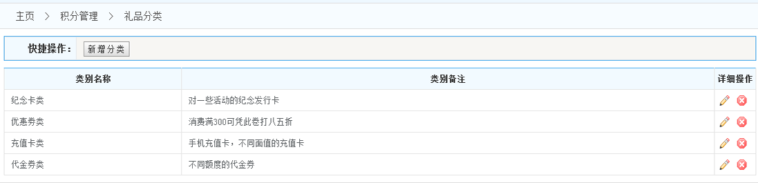 禮品分類列表:展示系統中設置的所有的禮品分類