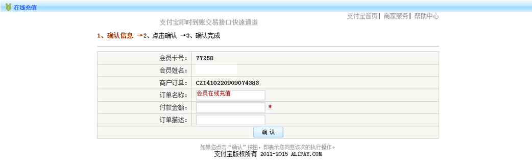 3.商戶訂單:唯一標示此次充值訂單的單號